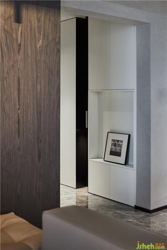 入戶區(qū)功能收納柜結(jié)合鋼板元素,同時(shí)滿足收納要求的基礎(chǔ)鋼板格子內(nèi)預(yù)留留夜吊燈,讓晚歸的家人感受回家的溫暖。