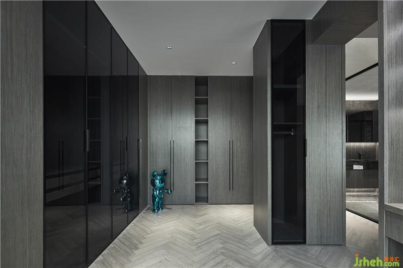 在簡(jiǎn)潔實(shí)用的基礎(chǔ)上,衣帽間門板采用大面積黑玻門板,讓大空間更大氣,也避免了視覺上的凌亂感,保持大空間的優(yōu)雅精致感。
