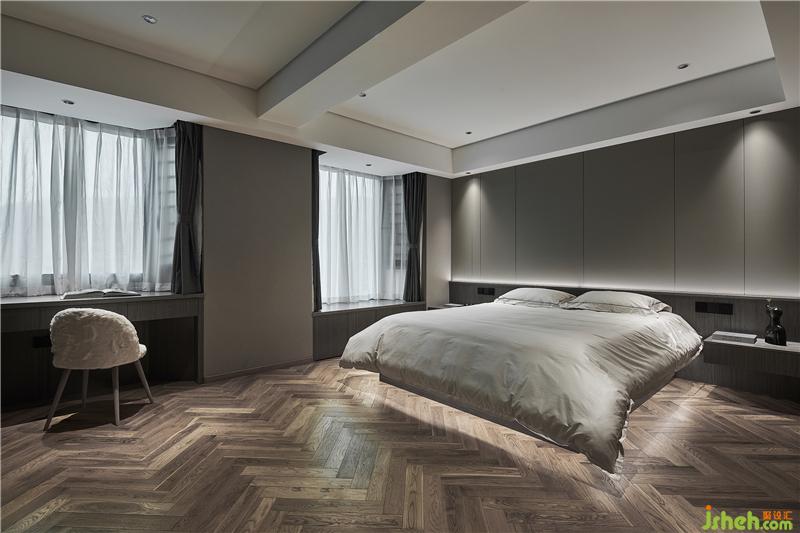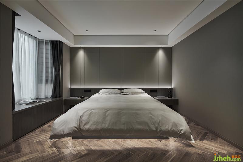 原結(jié)構(gòu)兩個(gè)房間打通合成一個(gè)臥室,應(yīng)用科技木搭配簡(jiǎn)潔的硬包材質(zhì),大空間以純粹的材質(zhì)表達(dá)體現(xiàn)“簡(jiǎn)、凈”之美。
