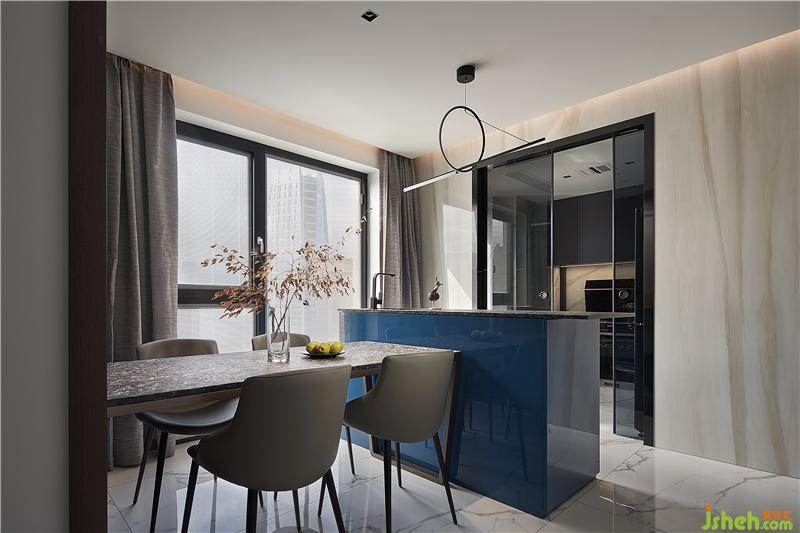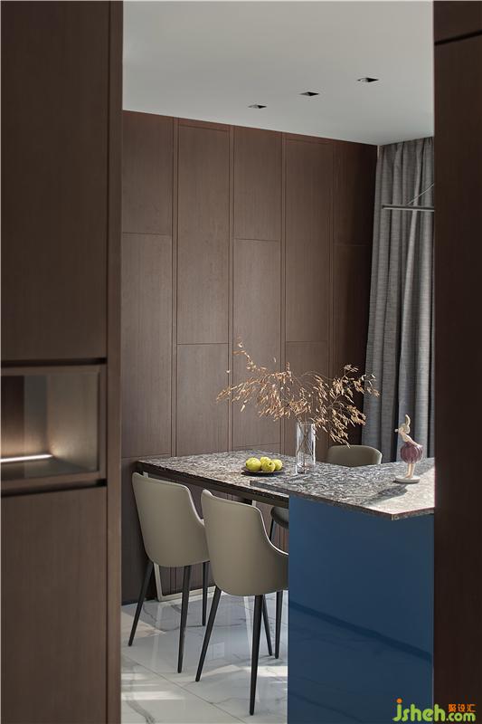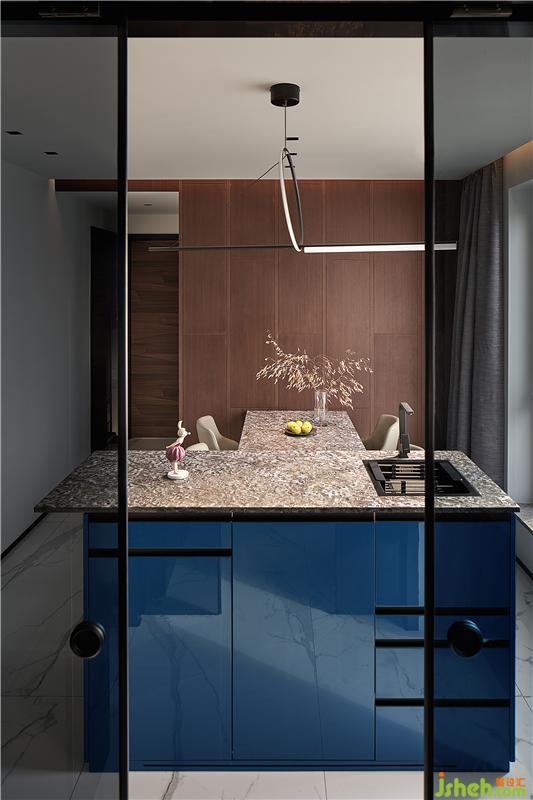 加以藍(lán)色吧臺(tái)點(diǎn)綴