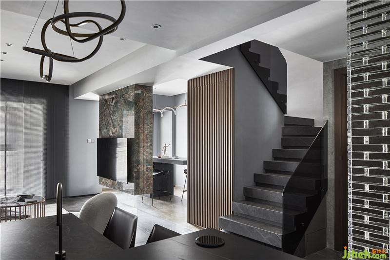 以強烈的材質(zhì)特性和空間分層為設計要素,合理的空間切分,流暢的空間動線,