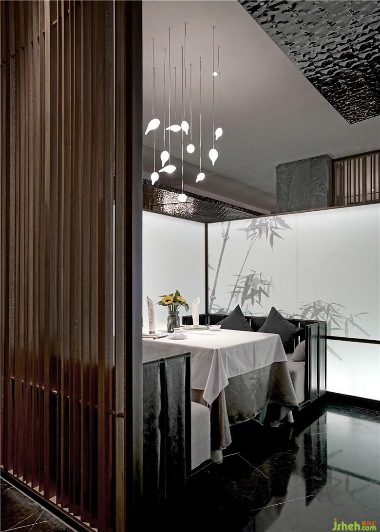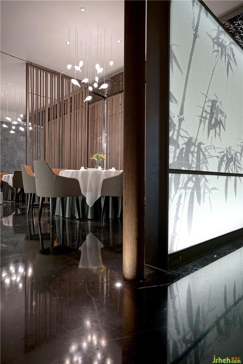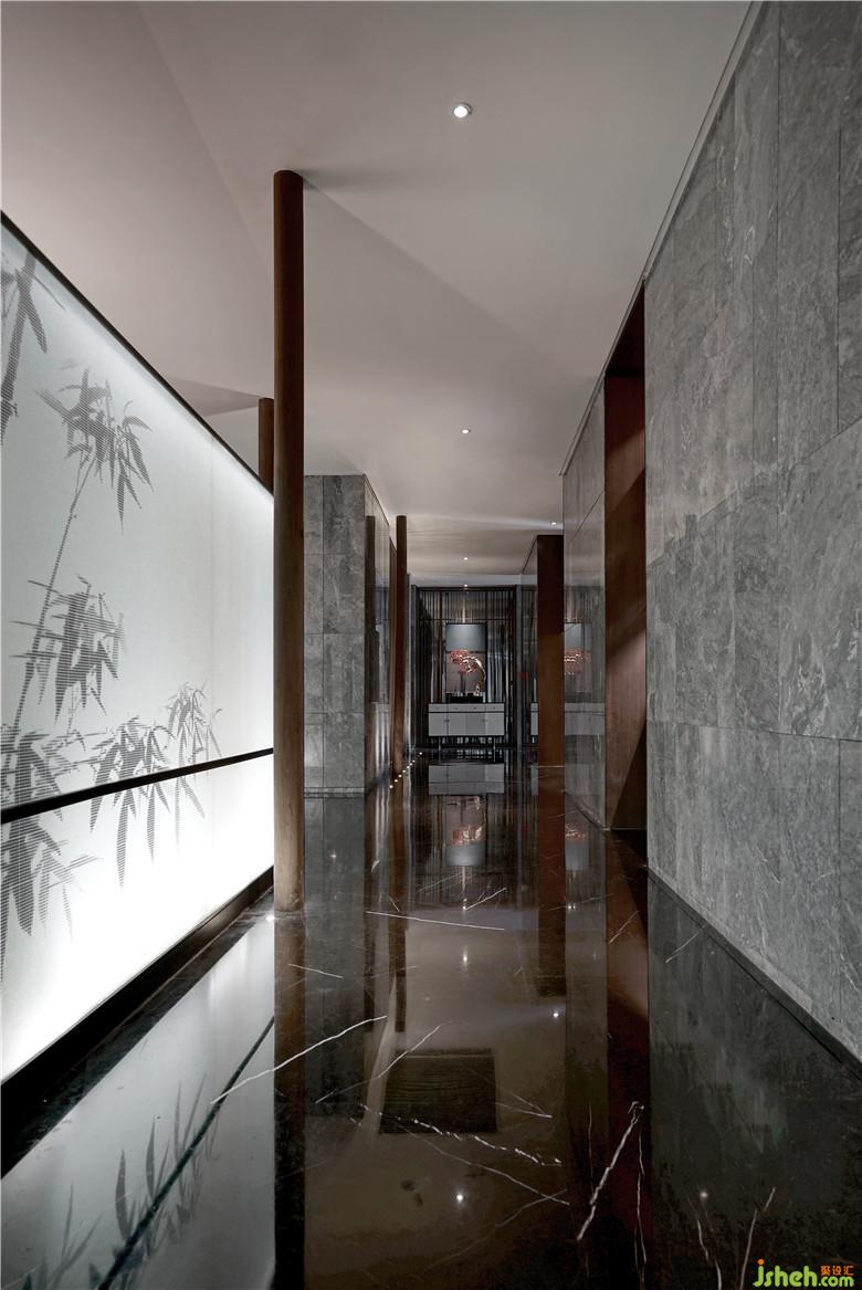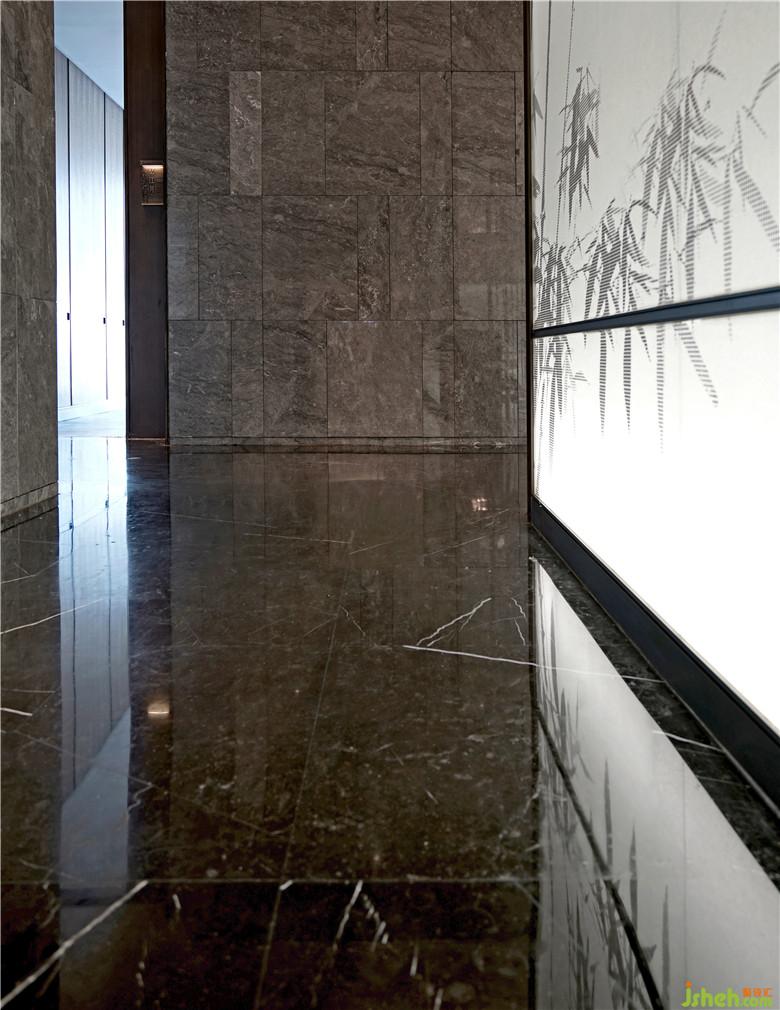 白色的景墻隔斷,是襯托水墨竹畫與景觀植物的絕佳幕布,與灰色相互應(yīng)襯,然后加之以自然、樸實(shí)為特性的原木色,給人以安靜閑適的感覺。黑色的巧妙搭配,帶來了精致的藝術(shù)效果,提升空間層次感。