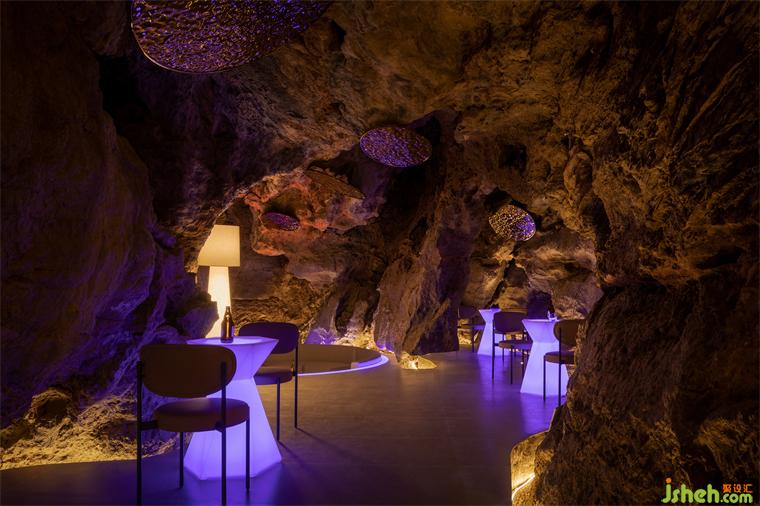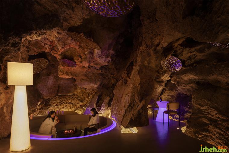 被山體橫穿的一部分室內(nèi)空間,民宿設(shè)計(jì)師將它打造成伏羲山最具特色的餐廳包間,讓人們?cè)诿朗持懈惺茉鷳B(tài)風(fēng)土鄉(xiāng)情,體驗(yàn)靠山而食、依山而居的生活方式。