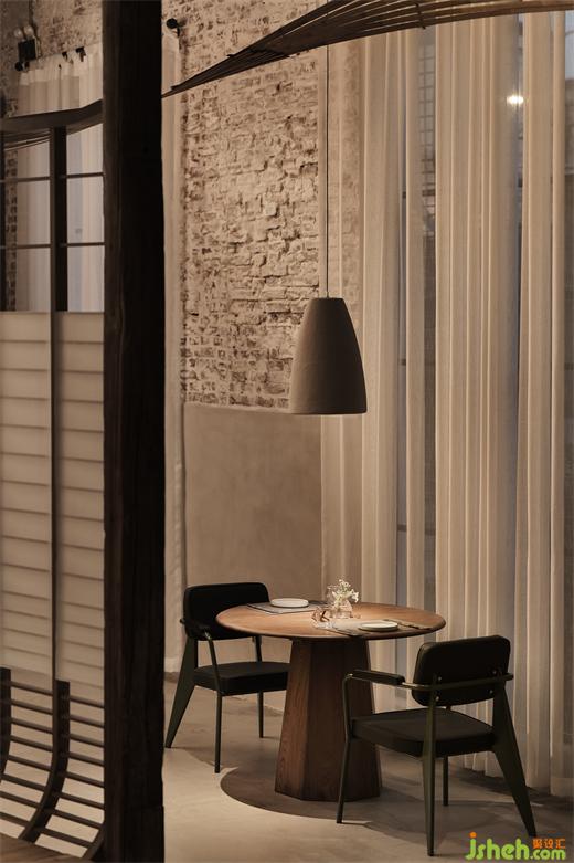 紅磚墻作為舊廠房原始的建筑元素,具有時(shí)代意義與價(jià)值。藝術(shù)餐廳設(shè)計(jì)延續(xù)墻面的使用不僅可以為餐廳增添獨(dú)特的文化氛圍,也符合持續(xù)發(fā)展的理念,減少對(duì)新材料的需求。設(shè)計(jì)師親自進(jìn)行參與修復(fù)工作,反復(fù)打磨,力求復(fù)原60年代的原貌,并賦予更多當(dāng)代的藝術(shù)性。