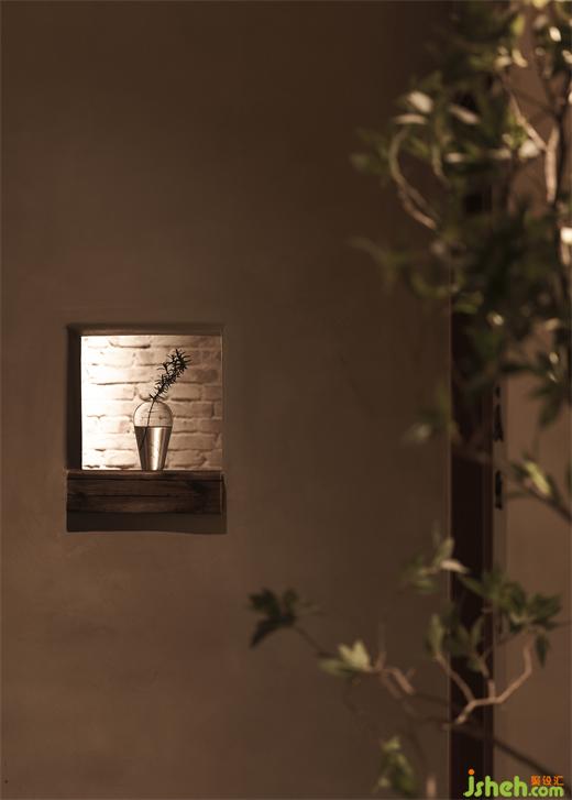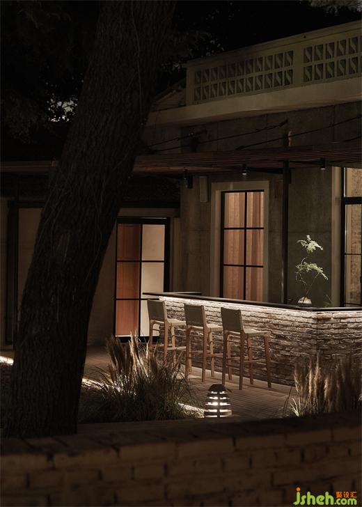 矮紅磚墻的設(shè)計(jì)增強(qiáng)了庭院的圍合感,使整個(gè)空間更具包容性。此外,設(shè)計(jì)師用松樹(shù)皮作為餐廳院子的鋪裝材料,其天然的質(zhì)感和顏色隨著日夜變遷不斷創(chuàng)造著自然之美。