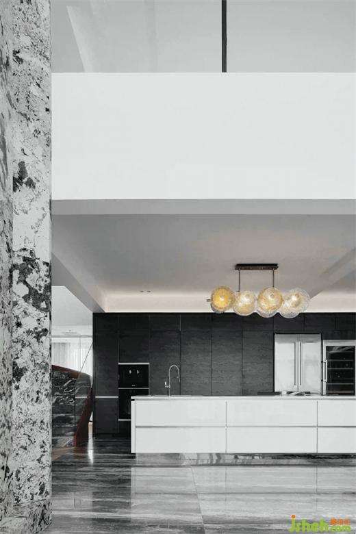 高級的空間同樣需要高級的配色,勃艮第紅的旋梯,家裝設(shè)計以性感與火辣的色彩張力,中和了黑白灰的理性克制。