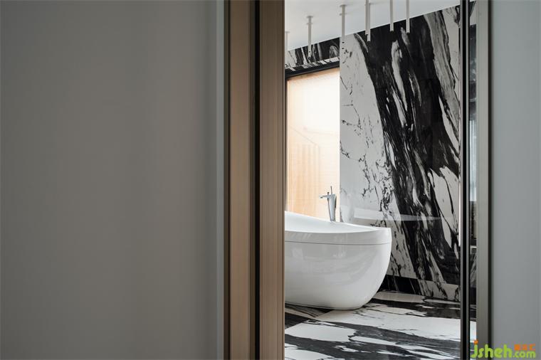 獨立式浴缸占據(jù)主衛(wèi)的C位,極簡造型,超凡脫俗,既實現(xiàn)了泡澡自由,也彰顯出主人精致的生活態(tài)度。
