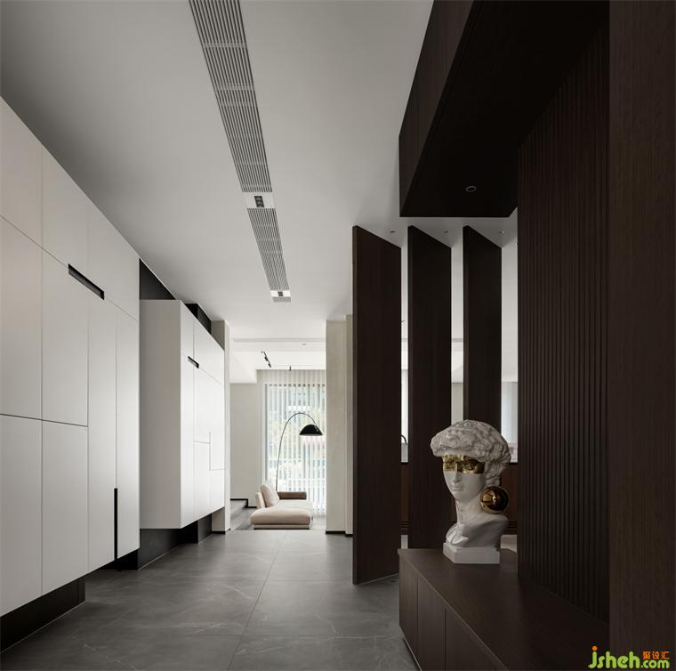 現(xiàn)代風(fēng)格是留白的藝術(shù)。設(shè)計(jì)師以密斯式流動(dòng)空間打底,別墅裝飾通過結(jié)構(gòu)空間的騰挪與留白,完成不同功能空間的自由交互。