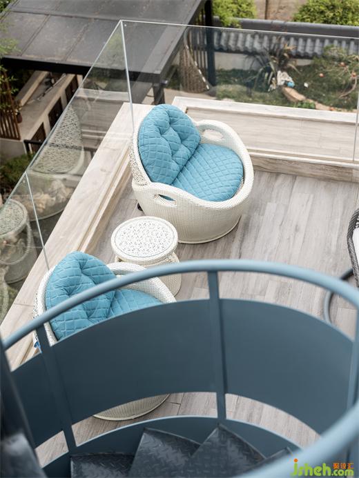 露臺(tái)是放飛心緒之地,循旋梯而上,抵?jǐn)垊僦_(tái)。走進(jìn)良夜,仰可觀星辰萬(wàn)象;極目之處,便是蠡湖萬(wàn)頃湖光。