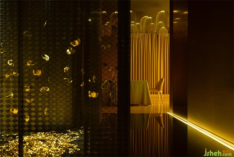 餐廳設(shè)計(jì)同樣是精神層面的追求,我刻意回避禪意中所特有的那種淡淡的苦澀,而是努力在詩(shī)意和浪漫中,增加一點(diǎn)甜的味道,在激發(fā)客人食欲的同時(shí),還能避免給人冷漠和苦澀的心理暗示。衛(wèi)生間以彩虹方式呈現(xiàn)的陰影、以及朦朧中飄落的銀杏樹葉等等,所有的語(yǔ)言和創(chuàng)意,都是為了關(guān)閉客人的理智,激活客人的情緒。只有讓客人的情緒產(chǎn)生波動(dòng),才能喚起客人的浪漫情懷,才能為人與人之間的關(guān)系更加親密友好助力,才能為社交活動(dòng)的事半功倍助力。