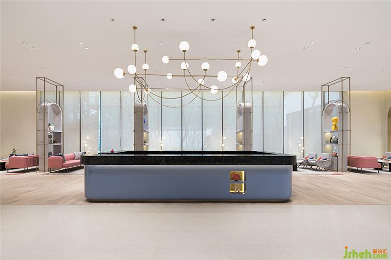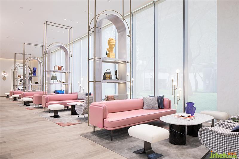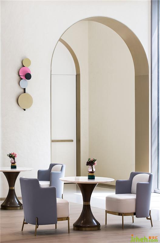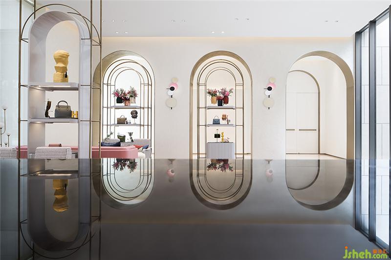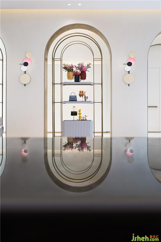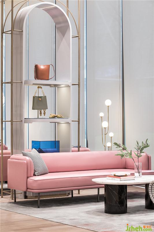 移步深度洽談區(qū),這種購物導(dǎo)向的參與感取代傳統(tǒng)的“單向傳播”,了解消費(fèi)者的內(nèi)心與感受,進(jìn)行了一場深入內(nèi)心的對話。取自于甪直地源文化中的暖白成為空間主調(diào),在此基礎(chǔ)上糅和臟粉、金色和青灰色,更具有靚麗女性色彩的空間性格一覽無余。