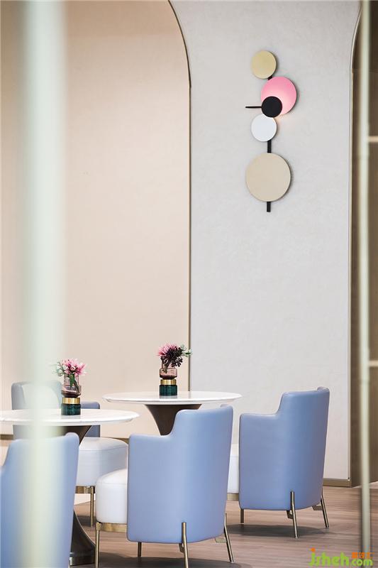 進(jìn)入洽談區(qū),就仿佛墜入了無邊奇幻的冰雪世界,水藍(lán)色基調(diào)為整個(gè)場域撐起靜謐而平和的不俗氣質(zhì)。而細(xì)節(jié)處淺粉和鵝黃點(diǎn)綴的裝飾,使談話被溫馨輕柔的氛圍包裹。