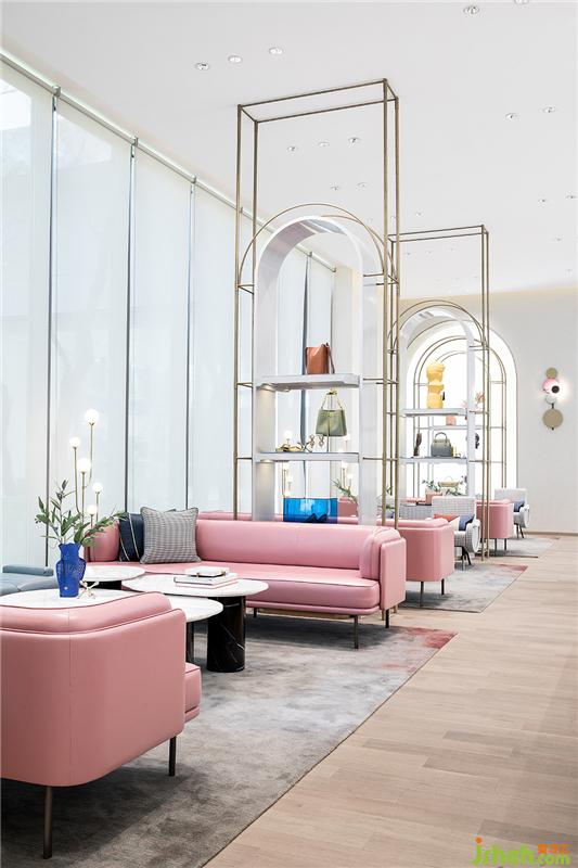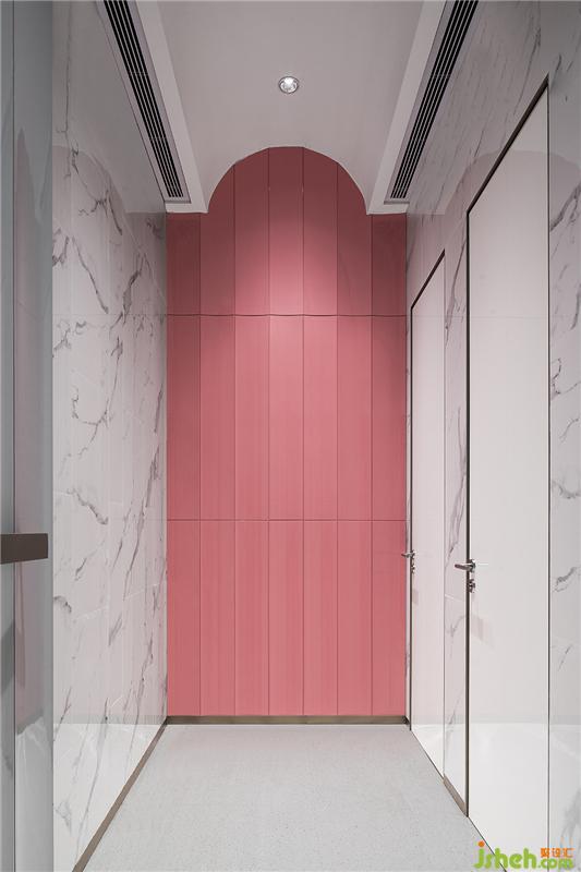 臟粉色皮質沙發(fā)與白色大理石茶幾之間的碰撞,就像是購置房產的慎重考量與輕松擁有兩者間的對抗。將沖突之處展露,是對傳統(tǒng)的極大顛覆,也是對未來的高遠期許。