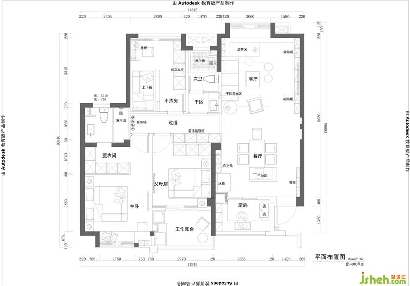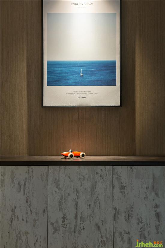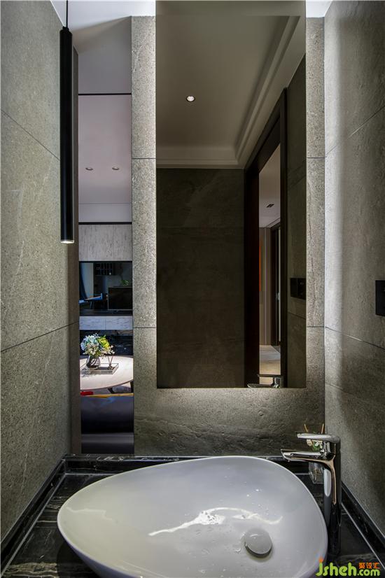 干區(qū)與沙發(fā)背景連為一體“借”客廳的一縷光線使整個空間更顯得通透,從干區(qū)往客廳看增加了美感,在不同光線的作用下,自然細密的肌理顯露出不同層次的色彩,方寸間勾勒出碎碎念與小歡喜,層層鋪開溫馨的生活碎片。