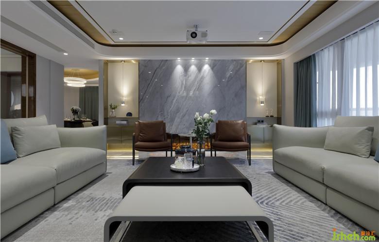 270㎡的現(xiàn)代風(fēng)大尺度空間中,設(shè)計(jì)師運(yùn)用黑白的簡(jiǎn)約色系為主視覺,佐以溫潤(rùn)軟裝與金屬線條,呈現(xiàn)恰到好處的奢華感。金都海尚的設(shè)計(jì),以人的尺度規(guī)劃空間,梳理空間的水平與垂直動(dòng)線,承襲詩(shī)意和溫潤(rùn),以金屬展現(xiàn)時(shí)尚與奢華,通過(guò)富有藝術(shù)感的美陳和家居,營(yíng)造詩(shī)意的棲居空間。設(shè)計(jì)師將“雅奢”作為空間設(shè)計(jì)的格調(diào)核心,以現(xiàn)代灰與白為主色基調(diào),用自然光影和家具陳設(shè)的點(diǎn)綴以及壁爐使其煥發(fā)出藝術(shù)生命力。