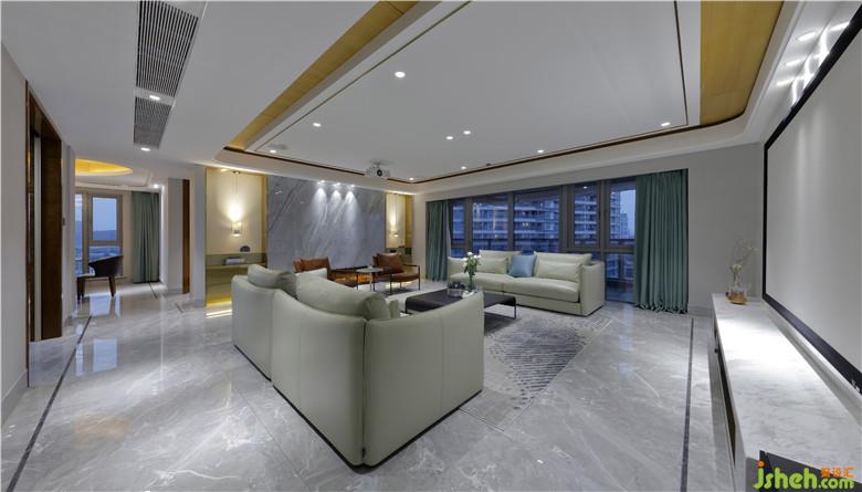 把環(huán)境帶進(jìn)生活,把生活帶進(jìn)環(huán)境。寬達(dá)6米的落地窗將室外美景展露無(wú)遺,盡入眼底的是一幅令人心曠神怡的海景畫卷。大尺度的落地窗開合有度,美好的陽(yáng)光照進(jìn)室內(nèi),地面上蕩漾微光,沙發(fā)的柔軟,金屬的華貴,水晶的璀璨、香氛的甜美、音樂(lè)的共鳴……空間不僅是視覺的,更是人的五感可以感受和觸摸的。