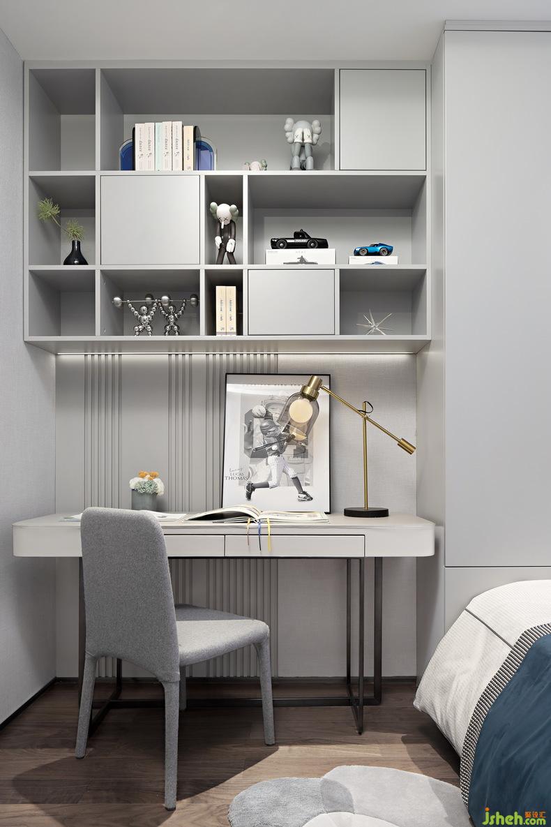 冷靜促思是小孩房的空間訴求,深色木紋的運(yùn)用止步于此,而以多質(zhì)感的灰調(diào)結(jié)合線面塊的元素創(chuàng)造出層次感和豐富感,讓小朋友的成長(zhǎng)和學(xué)習(xí)更流暢舒展。無(wú)需太多絢麗的色彩,他們的創(chuàng)意就是調(diào)色板,任由他們異想紛呈,天馬行空
