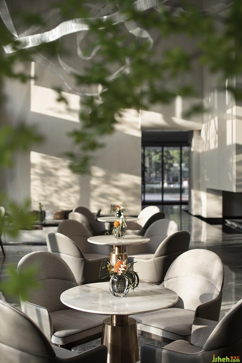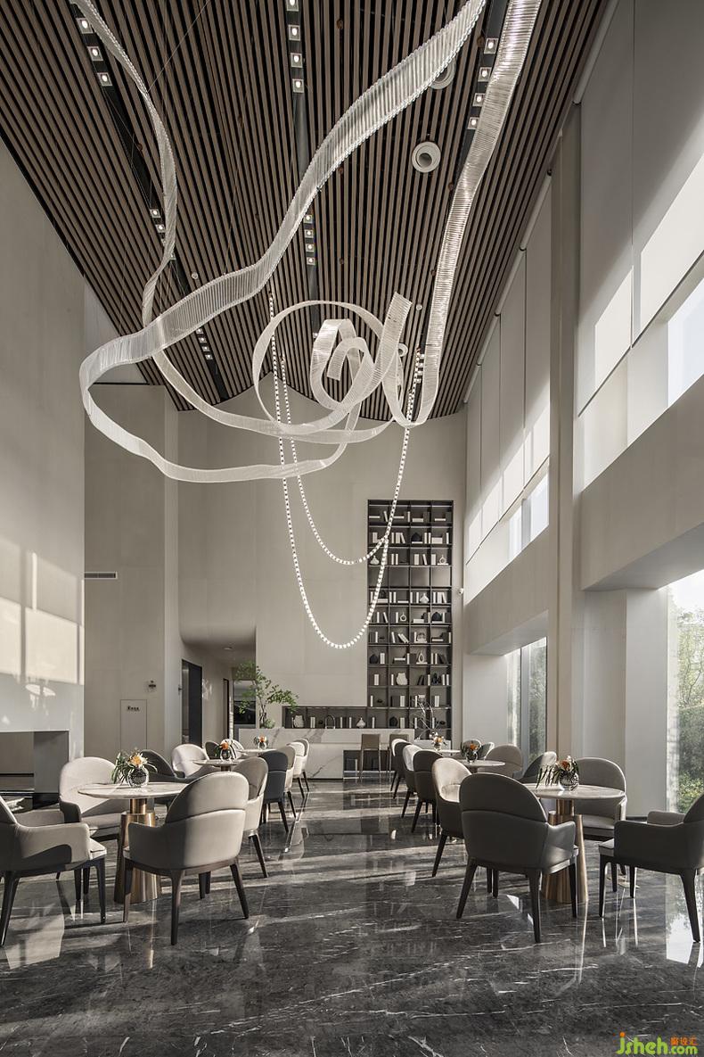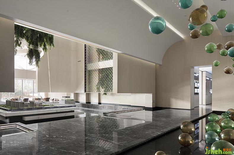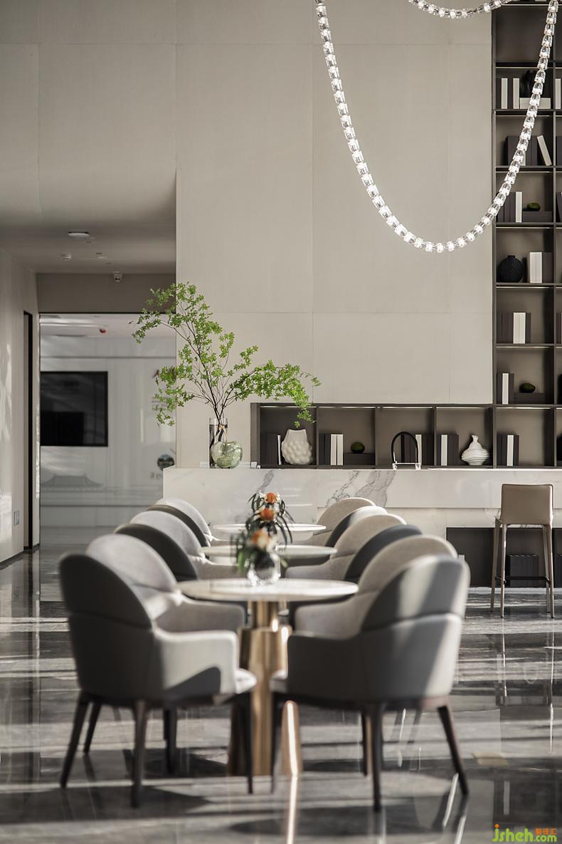 售樓處設(shè)計(jì)基于“人景交互”的理解,洽談區(qū)以大面積落地窗和開(kāi)放式的布局,打破空間之間的界限,拉近景觀與室內(nèi)的距離,讓自然的氣韻于內(nèi)外自由穿梭。