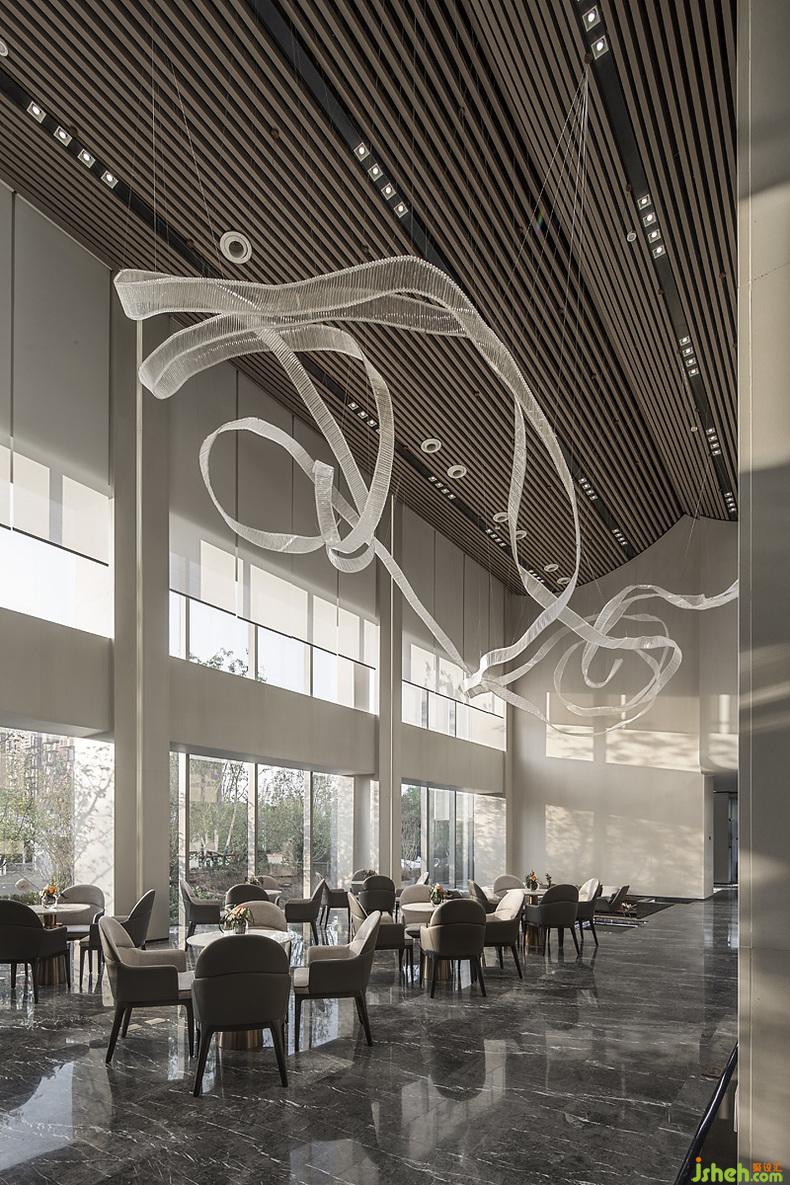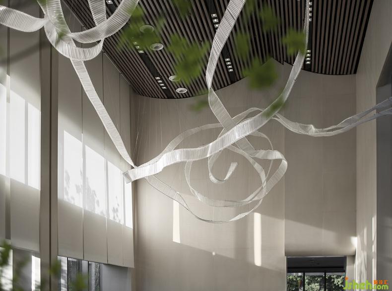 水影斑駁佇立在區(qū)域中,迎客招財(cái),用現(xiàn)代結(jié)構(gòu)的語(yǔ)言表達(dá),寓意繁盛騰達(dá)之意。在當(dāng)中游走或小憩,靜觀水脈在萬(wàn)物之中,盡情乘風(fēng)破浪,活躍生機(jī)。