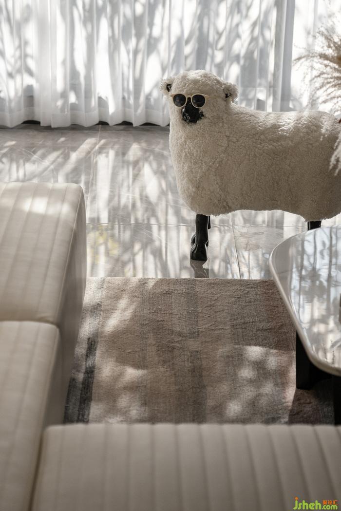 客廳米白色的舒軟沙發(fā)搭配造型可愛的動(dòng)物家具,樣板間設(shè)計(jì)構(gòu)成親子互動(dòng)區(qū)域,情感在這里升溫與凝聚。陽(yáng)光透過落地玻璃窗照入室內(nèi),在窗簾與地面上形成美妙的枝葉光影,影隨風(fēng)動(dòng),一人或與家人一起,閑看庭前花開花落,漫隨天外云卷云舒,享受靜謐優(yōu)雅的自然之美。