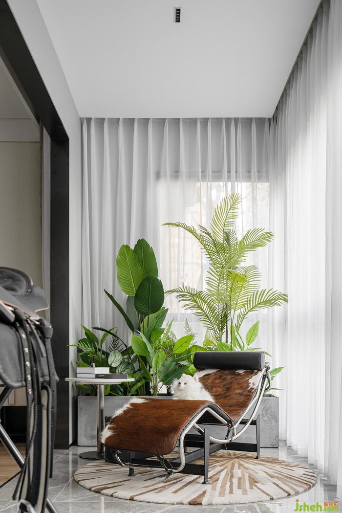 主臥陽(yáng)臺(tái)大面積落地玻璃窗,綠植在一旁悄然生長(zhǎng),明朗安靜的角落里陽(yáng)光充盈,散發(fā)出自然的活力與生機(jī)。一把躺椅,一杯花茶,一本小書,在休閑的日子里感受午后愜意的陽(yáng)光,隨著時(shí)間、氣候的變化感知窗外四季的光景,捕捉每一刻的小幸福。