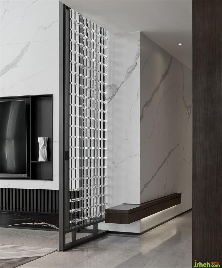 客廳是社交的中心,傳達(dá)了契合主人疏朗的個(gè)性。格局大氣自帶溫潤感,府邸設(shè)計(jì)留白與平靜疏淡的布局,僅于對(duì)角置入水晶屏風(fēng),整體讓渡于獲得內(nèi)心秩序與安寧的光。如同一位詩人,懂得欣賞黎明的來臨。