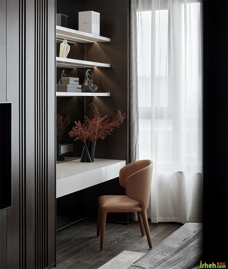 茶室是客廳與餐廳之外的一隅僻靜之地,也是與友可靜靜品一壺烏龍茶的清幽社交的空間。