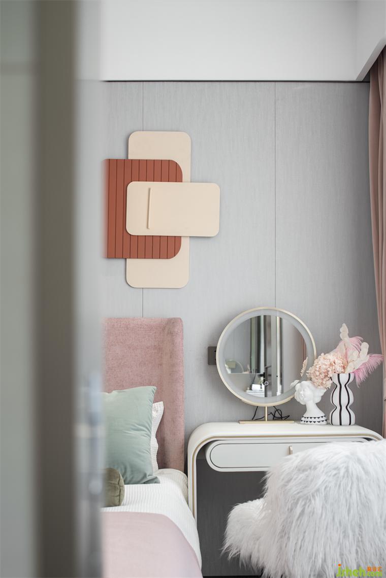 每個(gè)小女孩兒心中有著一個(gè)公主夢,女孩房以浪漫的粉色營造空間的夢幻柔美。公主皇冠造型抱枕,優(yōu)美弧線的梳妝臺,專屬的衣帽柜等,滿足女孩對生活的所有憧憬。