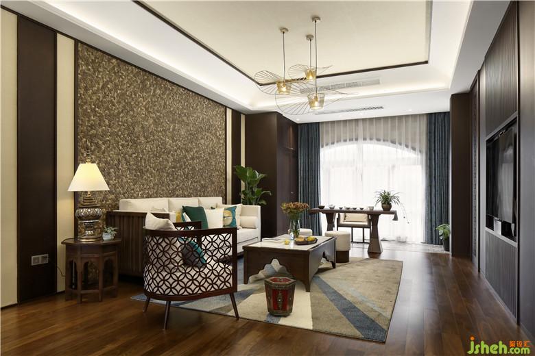客廳空間色澤室內(nèi)設(shè)計(jì)師以檀木色配著米白色的布藝沙發(fā)作為空間重心,搭配著異域風(fēng)情的抱枕,靈活奏亮了整個(gè)空間的氣氛,提升了整個(gè)空間的鮮活度。在材質(zhì)上運(yùn)用東南亞木材所特有的色澤和紋理,和其他的天然原材料,讓居家空間自然古樸。