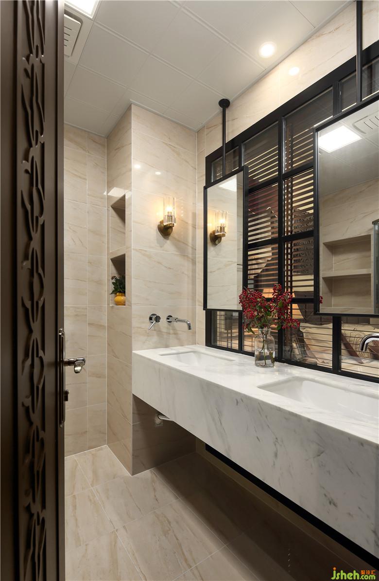 室內(nèi)設(shè)計(jì)師主衛(wèi)空間設(shè)計(jì)了雙臺(tái)盆,滿足了兩人同時(shí)洗漱的需求,連梳妝鏡都是雙人份的,可以說是十分體貼了。