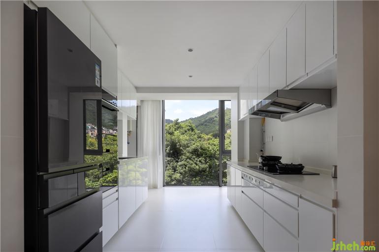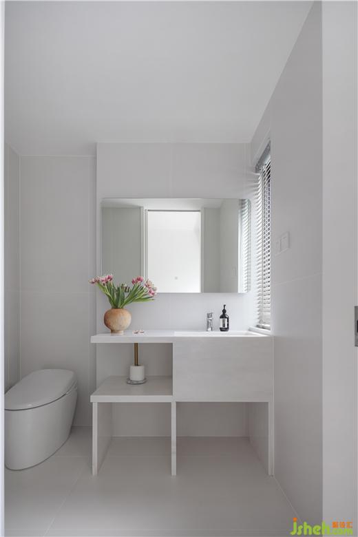 設(shè)計(jì)師深度考量居住者的使用體驗(yàn),私宅設(shè)計(jì)在初始空間布局上構(gòu)建L型洗手間,為身體創(chuàng)造更加舒適的尺度。通體的白延續(xù)空間主旋律,為居住者營造清新純凈的沐浴環(huán)境。