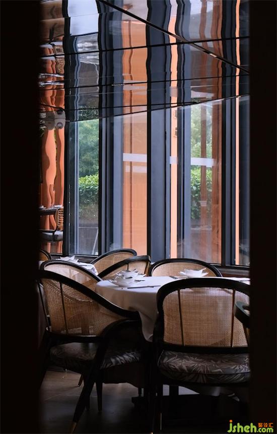 在設(shè)計(jì)思考上,餐廳設(shè)計(jì)師我們考慮的是一層空間高度過(guò)于不理想,希望通過(guò)鏡面效果來(lái)改善,同時(shí)考慮和燈具結(jié)合,餐廳設(shè)計(jì)師將其有規(guī)律的分割,達(dá)到功能與形式的完美結(jié)合。