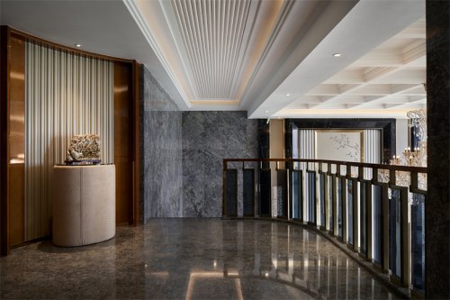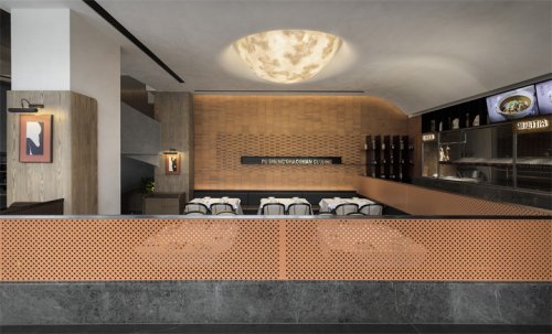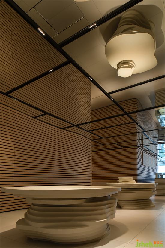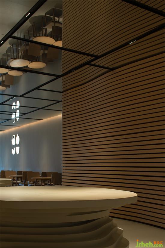 The designer breaks the old impression of the traditional teahouse and constructs a new social space for tea drinking in the context. All glass ceiling design, hanging "three lanes and seven lanes" -- look at everything in the mirror, everything in the mirror. White wall black tile, vermilion high door, the mark awakens.