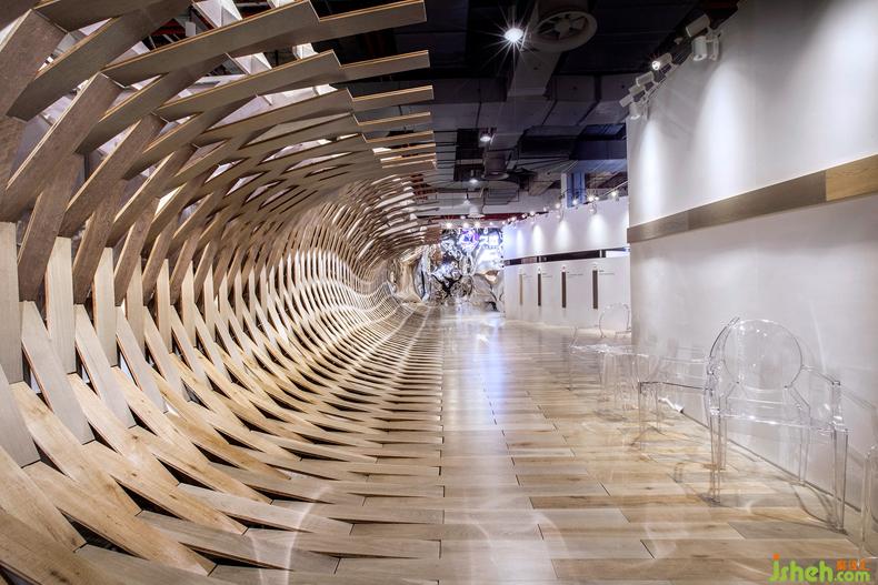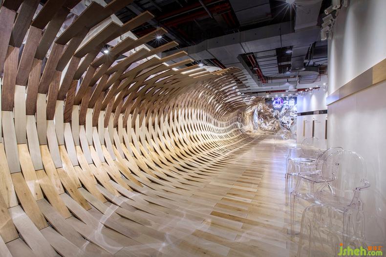 TOWOdesign又將水的美學(xué)潛質(zhì)再度延展,以充滿(mǎn)變幻的水流形態(tài)為靈感,打造出一幕極具視覺(jué)沖擊的雕塑。每一塊地板部件都被賦予液體形態(tài)的流動(dòng)旋律,但又包含著木質(zhì)的靜態(tài)紋理。