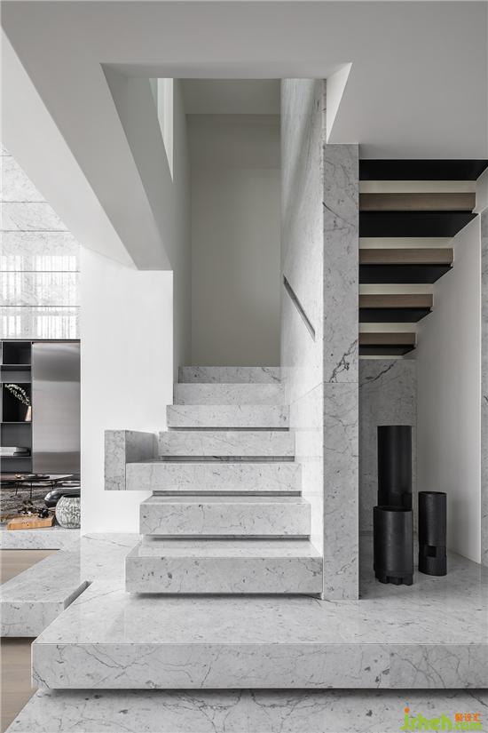 以室內(nèi)建筑的概念,將空間中的量體透過層疊等形塑變化、墻體堆棧分割重組的手法延伸整個立體空間。別墅裝飾