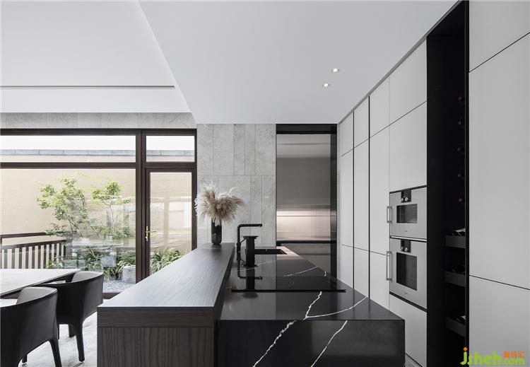隨著建筑依托山勢南低北高,開口朝向決策了戶外與室內(nèi)的界定,大片的落地窗引領(lǐng)室內(nèi)的光線與視覺的延伸,樣板房設(shè)計布局里塑造動線與儀式性的存在。