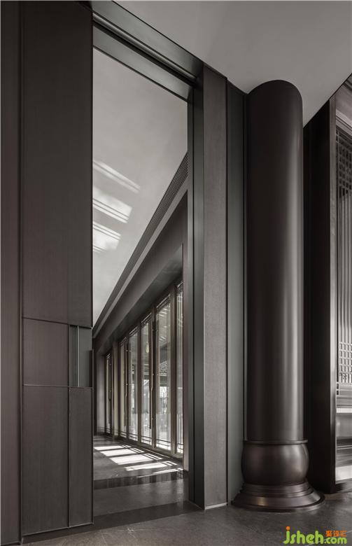 VIP室借鑒了中式古典園林中的“借景”,將整個(gè)中庭景觀引入室內(nèi),將其作為空間中最大的藝術(shù)品,鋪開一幅生動(dòng)立體的畫卷將四水歸堂的東方古典園林轉(zhuǎn)換成為空間中最大的藝術(shù)裝置,結(jié)構(gòu)環(huán)繞的空間場域和彼此相望的廊道,在動(dòng)在線形成可游可觀可居的空間關(guān)系。