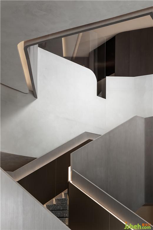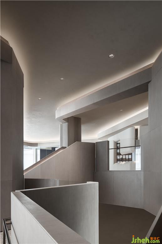 售樓處主設(shè)計師唐忠漢先生在初期與建筑設(shè)計單位溝通時提出峽谷溪流的構(gòu)想,利用原建筑的高差關(guān)系,通過折面線條的穿插,作為淬鍊城市歷史的表現(xiàn)方式,與自然結(jié)合呼應(yīng)本真與自我。