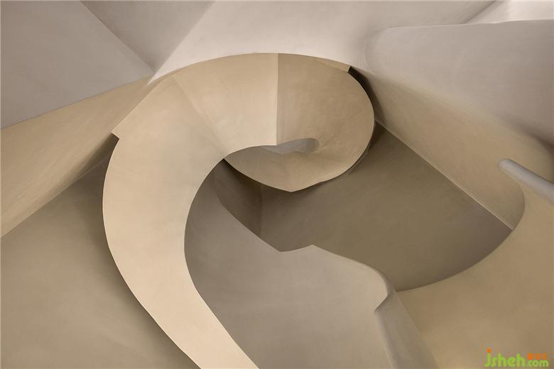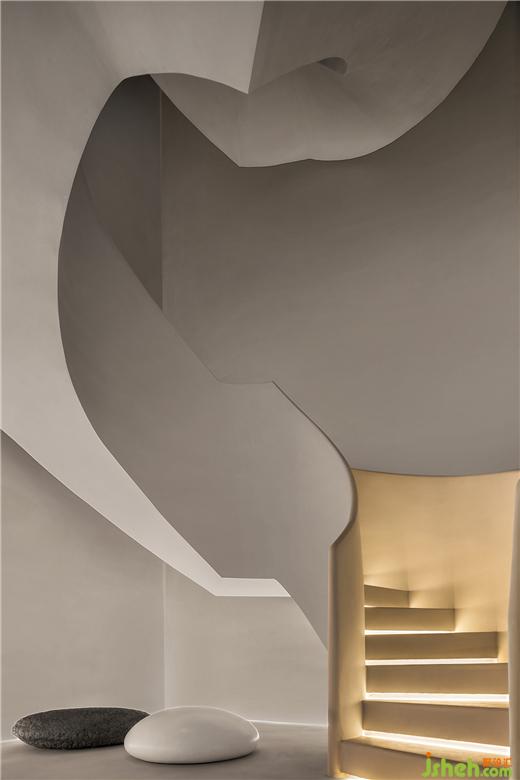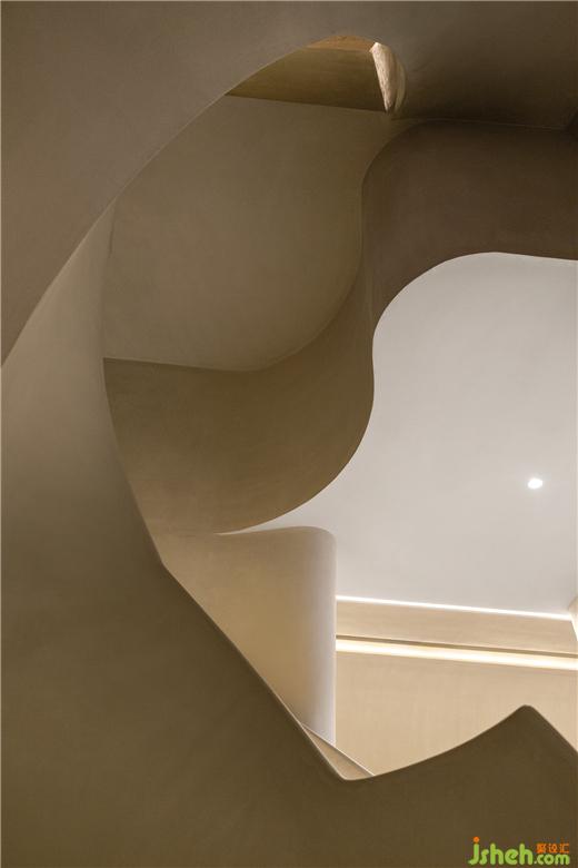 垂直動線樓梯與主臥更衣間的天花板造型,增加中式建筑屋頂-盝頂?shù)木€條,樣板間設(shè)計延續(xù)首層利用現(xiàn)代極簡線條呈現(xiàn)中式傳統(tǒng)語匯,創(chuàng)造出扶搖直上的空間寓意,二層廊道空間增加開放展示柜體,利用不同厚度的立板,實體與虛體的層板,增加柜體的張力及視覺的探索,也讓長形的廊道增加視覺層次,不再只是剎那間經(jīng)過的過度空間,是可以短暫停留觀賞的展示空間。