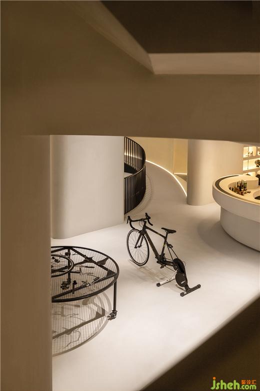 一是地上層為新中式風格與現(xiàn)代線條的連結(jié),首層的天花板造型,利用現(xiàn)代的極簡線條,詮釋中式傳統(tǒng)山形屋頂?shù)妮喞?,也強化了空間在視覺上的延伸感,天花板線型燈光,與造型吊燈,增加空間層次與輪廓,同時也修飾貫穿空間中心的建筑結(jié)構(gòu)梁,玄關(guān)鞋柜與電視柜體的結(jié)合,大面積的柜體造型將不同區(qū)域連接,數(shù)組節(jié)奏韻律引導視覺方向形成縱向穿梭軸線,柜體末端的壁爐,增加空間溫暖氛圍,像一段探索旅程的中繼點,漸漸放慢腳步,感受空間的溫潤。餐桌崁入與中島造型,生活中的互動緊緊相連著,廚房拉門用幾何圖形的輪廓線條,增加空間中不同的造型語匯,延續(xù)空間行跡的探索,創(chuàng)造空間里不同的生活型態(tài)。