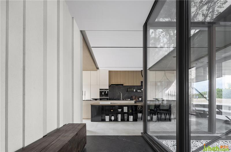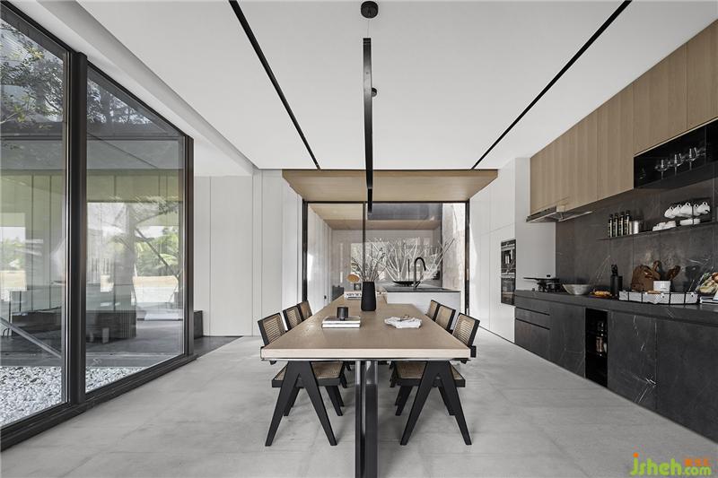 由設(shè)計(jì)師唐忠漢設(shè)計(jì)的「三亞 國(guó)美·海棠灣」獨(dú)棟別墅項(xiàng)目,地上在整體空間的規(guī)畫(huà),將所有的空間尺度敞開(kāi),透過(guò)一層層空間縮放,三亞樣板房設(shè)計(jì)層次性的步入不同空間。車(chē)庫(kù)、玄關(guān)、客廳、景觀(guān)區(qū)過(guò)道、西廚,戶(hù)外挑空區(qū)、茶室,每一層次空間僅透過(guò)地坪或透明玻璃界定不同機(jī)能性質(zhì),使得是視覺(jué)的效益不被空間墻體給局限。