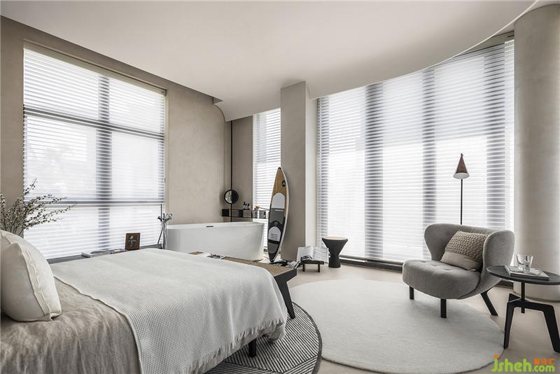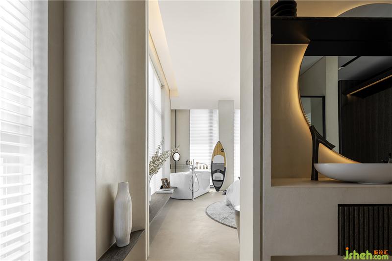 誰說泡澡只能在衛(wèi)浴中享受,把浴缸獨(dú)立置放于房間里,旁邊擺放著方才去海邊的潛具,以泡澡來結(jié)束一整個下午的運(yùn)動時光。睡前坐在床頭閱讀早晨的尚未讀完的小說,轉(zhuǎn)身放置于床背墻中簍空層架,熄燈休息。