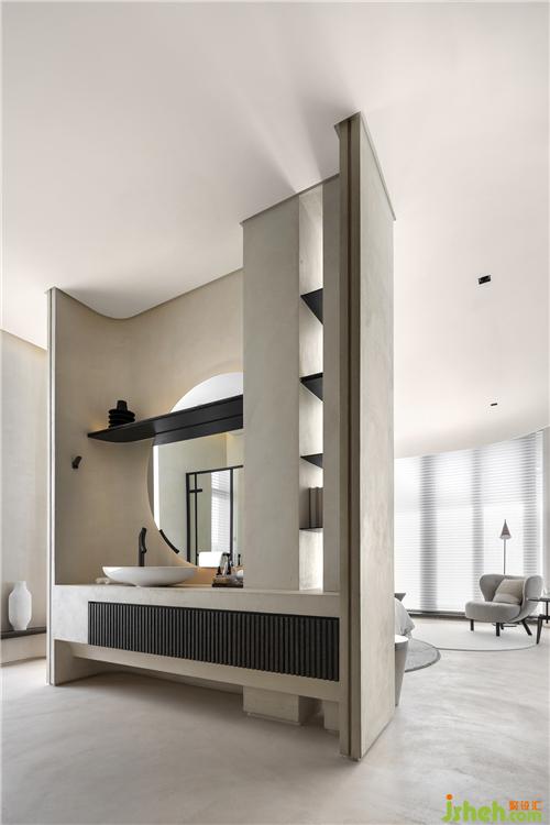 房間的壁面及天花板以弧形收尾,帶點(diǎn)女孩的俏皮風(fēng)格,衛(wèi)浴面臺更是以包覆感受的弧線壁面,讓鏡面與層架交集結(jié)合,線與面的優(yōu)美展現(xiàn)便顯現(xiàn)于眼前。
