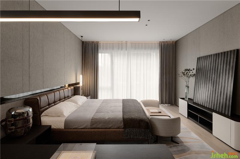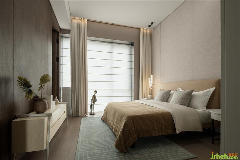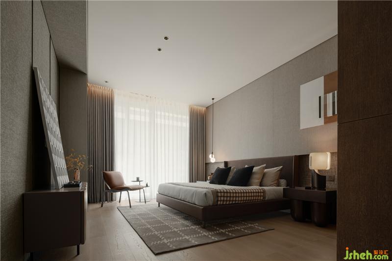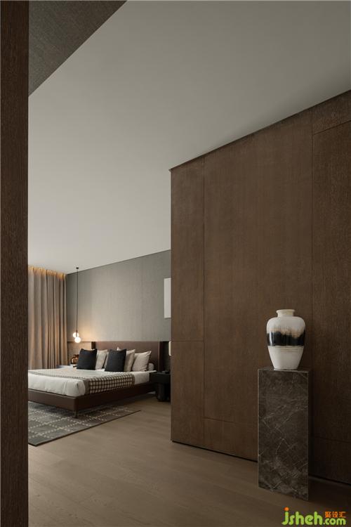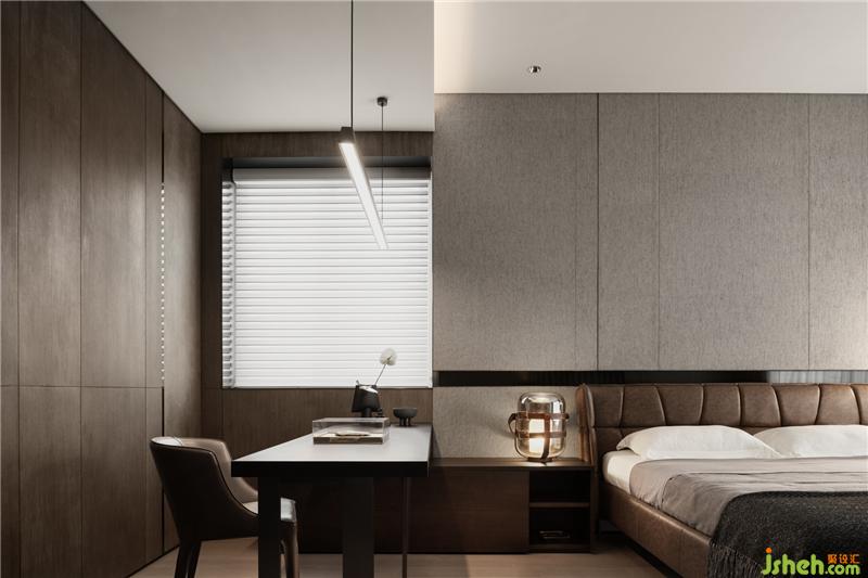 次臥與客房搭配不同深淺的床頭主墻,??跇影宸吭O(shè)計作為整體調(diào)性的掌控,配合色彩的輕重,區(qū)分年紀與不同使用者的設(shè)定。