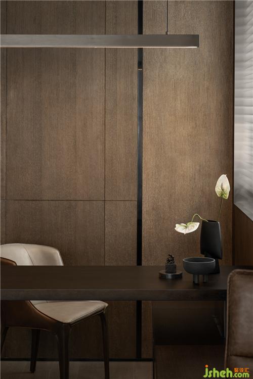 電視墻與底墻以鐵件作為裝飾,運用比例形成編織感與層次的展現(xiàn)。