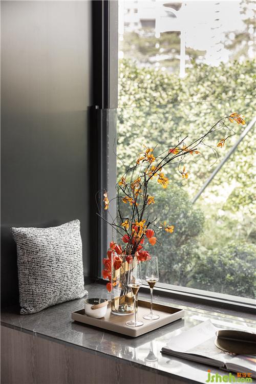 凸窗借景于室現(xiàn)代內(nèi)斂的空間手法,俐落卻不失多變換的風(fēng)景及生活軌跡,客廳大面積的開(kāi)窗,深圳樣板房設(shè)計(jì)除了造型層面之外,更賦予空間產(chǎn)生自然的氣息,依著景致對(duì)坐,公區(qū)的氣場(chǎng)自然形成。