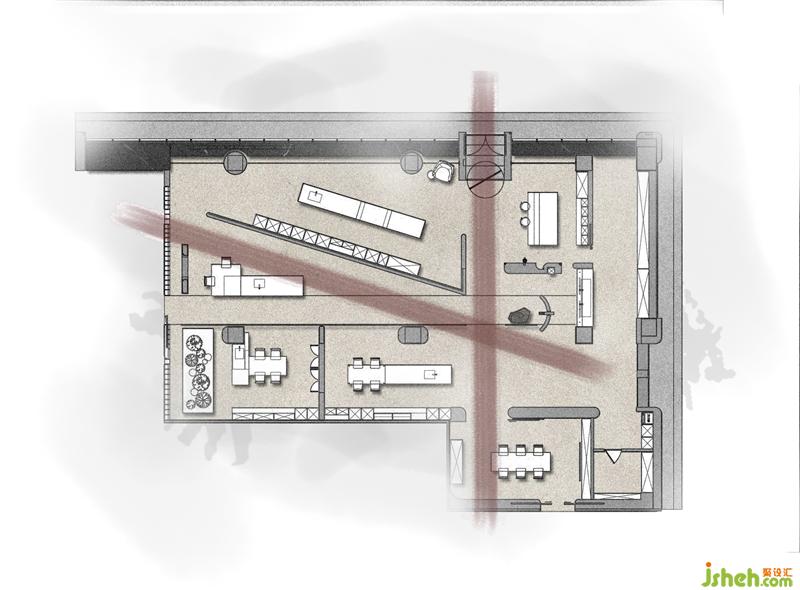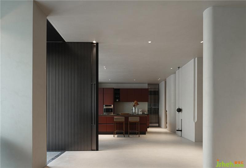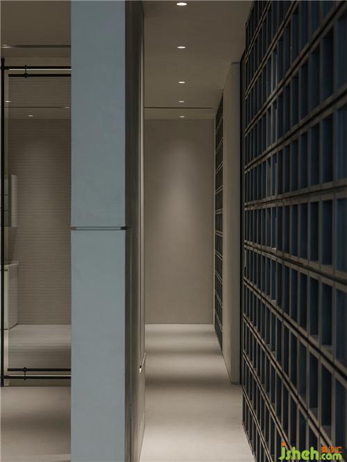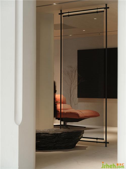 展廳主入口,內(nèi)退的形式將室內(nèi)的區(qū)域劃分部分給到室外,使人在步入的過程中產(chǎn)生儀式感,沈陽展廳設(shè)計而采用中軸旋轉(zhuǎn)的矩形門作為聯(lián)結(jié)室內(nèi)與室外的通道,移門的旋轉(zhuǎn),視野隨之由遞減到遞增,這種視覺上的動態(tài)變化,這種“初其狹,才通人”的心境轉(zhuǎn)換,強化儀式感并賦予場域的精神與能量。