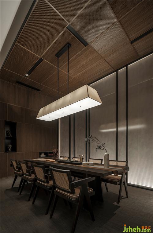 The crisscrossing arcs on the ceilings of the walk-in closet extend the style elements of the overall space. The open closet frees the space of the narrow corridor. The hanging iron pieces present the lightness of the closet and reduce the oppression of the walk-in closet. The leather backboard further increases the texture. On the white lacquered wall in the bedroom, the linear division adds the expressions of the space. The dark-color leather headboard accompanied by the mildness of the wood veneer looks like a girl with the outstanding temperament, cold demeanor, elegant posture, and passionate heart.