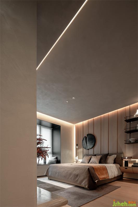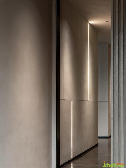 入戶的玄關(guān),樣板間設(shè)計了具有儀式感的鞋帽空間,同時用空間區(qū)分出一處彰顯室內(nèi)外之間的中介空間。整體空間的色彩設(shè)定以大自然的石材、木皮組成的淺灰階調(diào)性,使空間溫潤自然。