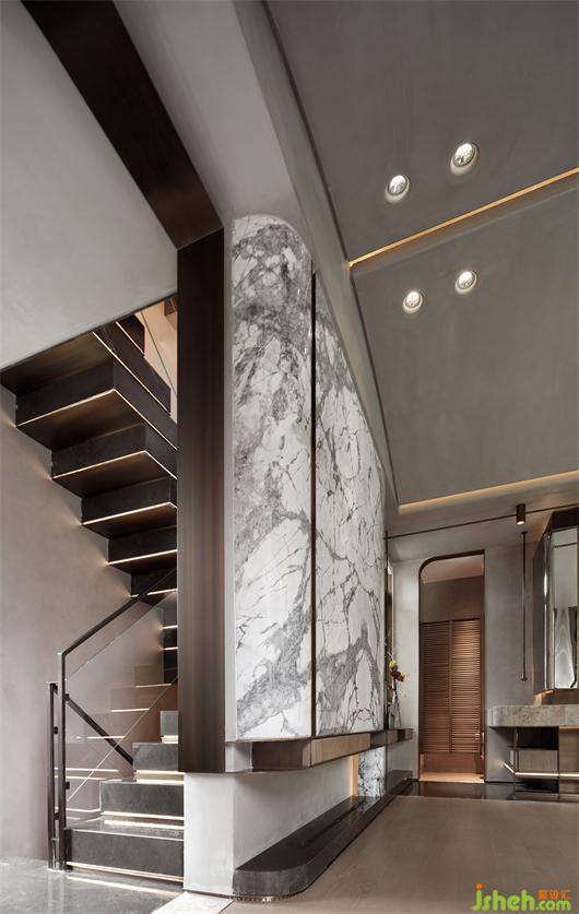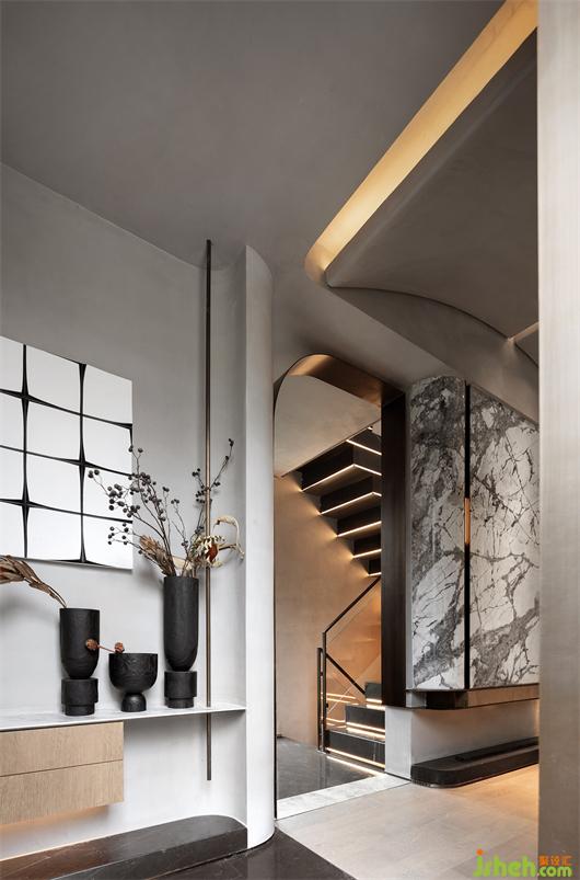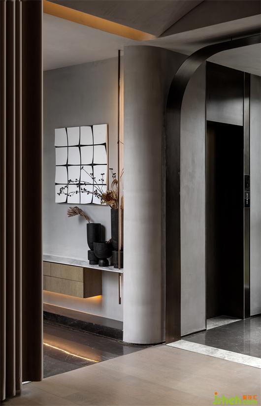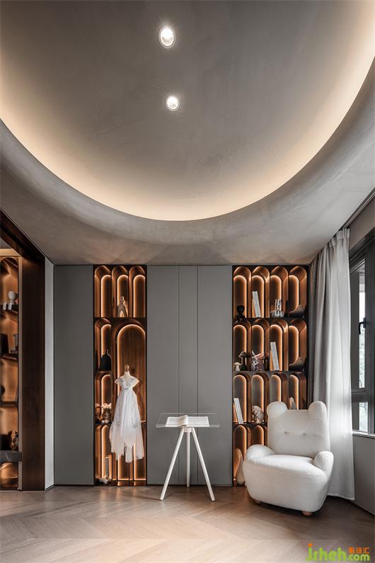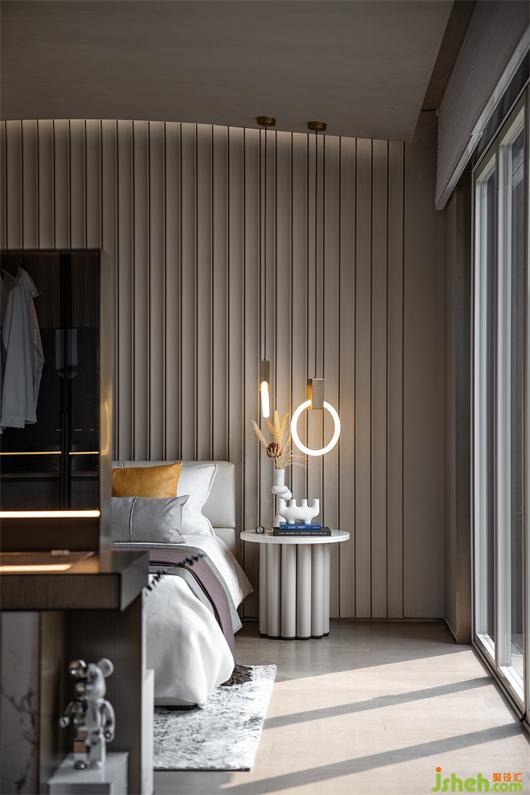 潔凈的天花與米灰色墻面、極具腔調(diào)的灰色皮革背景、舒適溫暖的布藝床品,在簡(jiǎn)約的空間中相得益彰,構(gòu)建了一個(gè)遠(yuǎn)離都市喧囂的詩意空間。